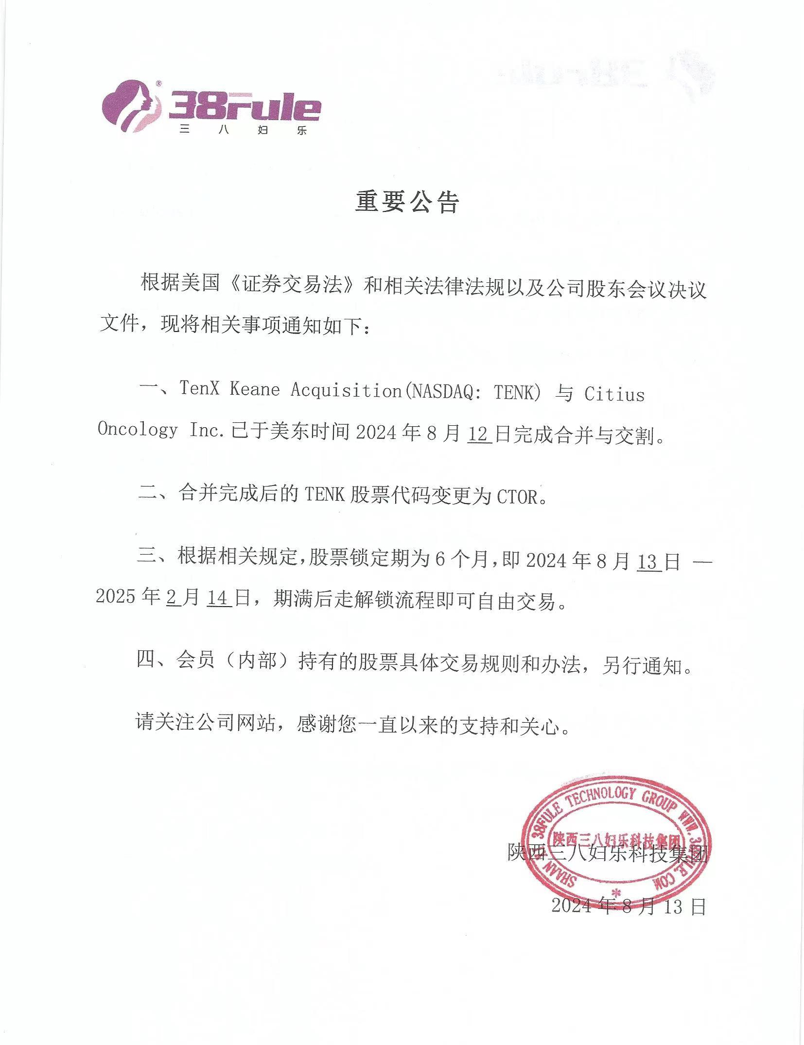为了保护投资者的权益,确认陕西三八妇乐科技股份有限公司原职工持股会股东信息,请持有陕西三八妇乐科技股份有限公司或西安中信股权托管有限公司签发的股权权属证明文件的各投资人,将股权证明文件影印件、身份证复印件和联系电话、通讯地址等信息发送至公司邮箱,公司核实无误后将回复各投资人。
